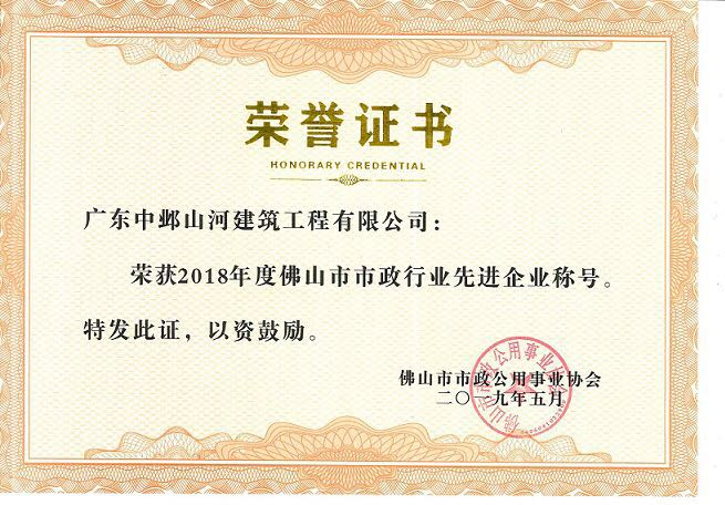 会上表彰了一批先进企业。其中,作为星空web版登录入口全资子星空online(中国)的广东中邺山河建筑工程有限星空online(中国)获得2018年度佛山市市政公用事业行业“先进企业”奖项。星空online(中国)经营部谢伟权同志代表星空online(中国)上台领奖,协会负责人颁发了奖牌与荣誉证书。