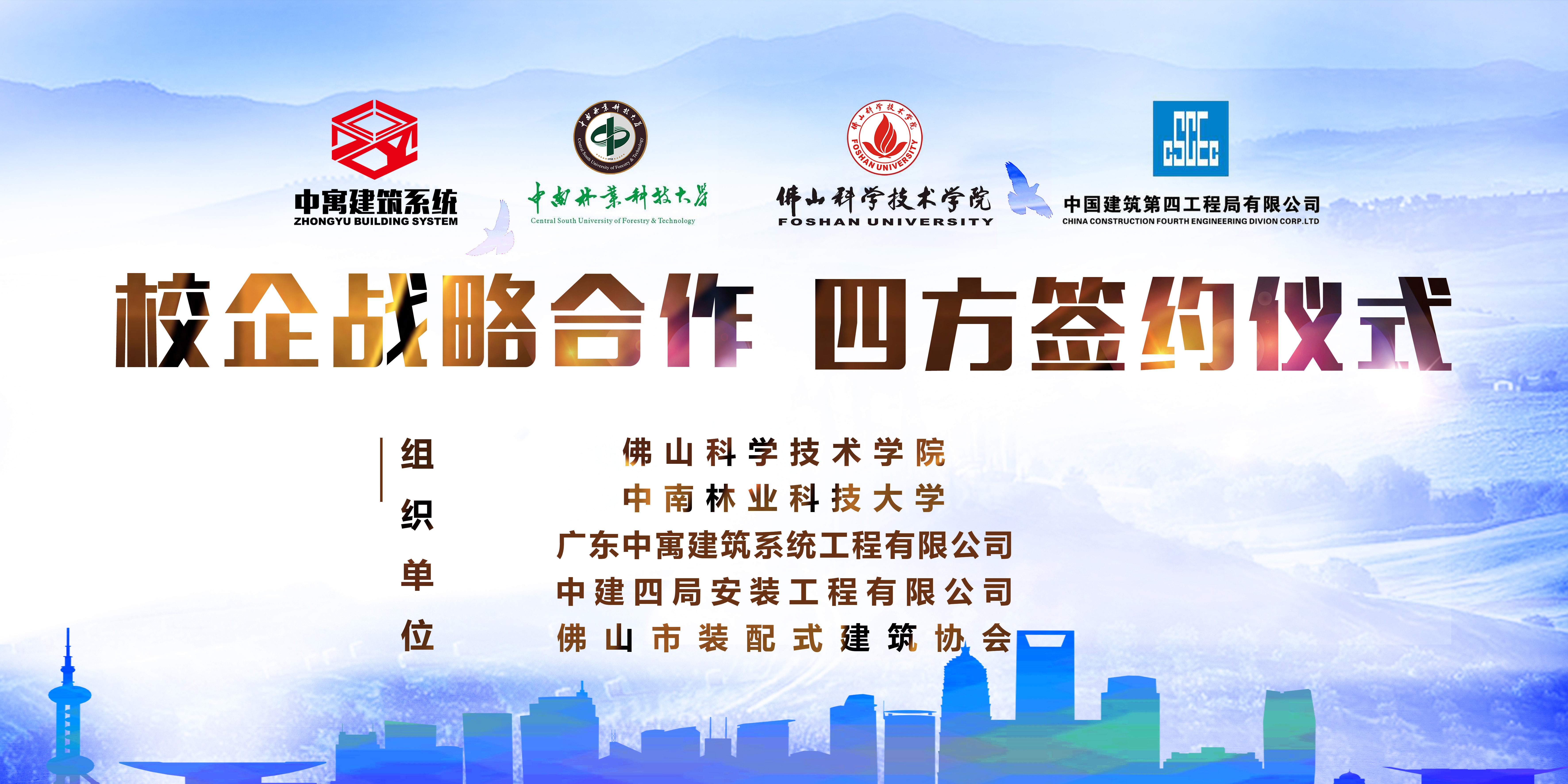 为确立长期战略合作伙伴关系,建立校企产学研合作机制,本着加强合作、优势互补、平等互利、共同发展的原则。2020年8月9日上午10:00,在佛山科学技术学院(仙溪校区)行政楼A1栋5楼533会议室,佛山科学技术学院交通与土木建筑学院、中南林业科技大学土木工程学院、星空web版登录入口、中建四局安装工程有限星空online(中国)、佛山市装配式建筑协会五方单位共同组织、举行了校企战略合作四方签约仪式。